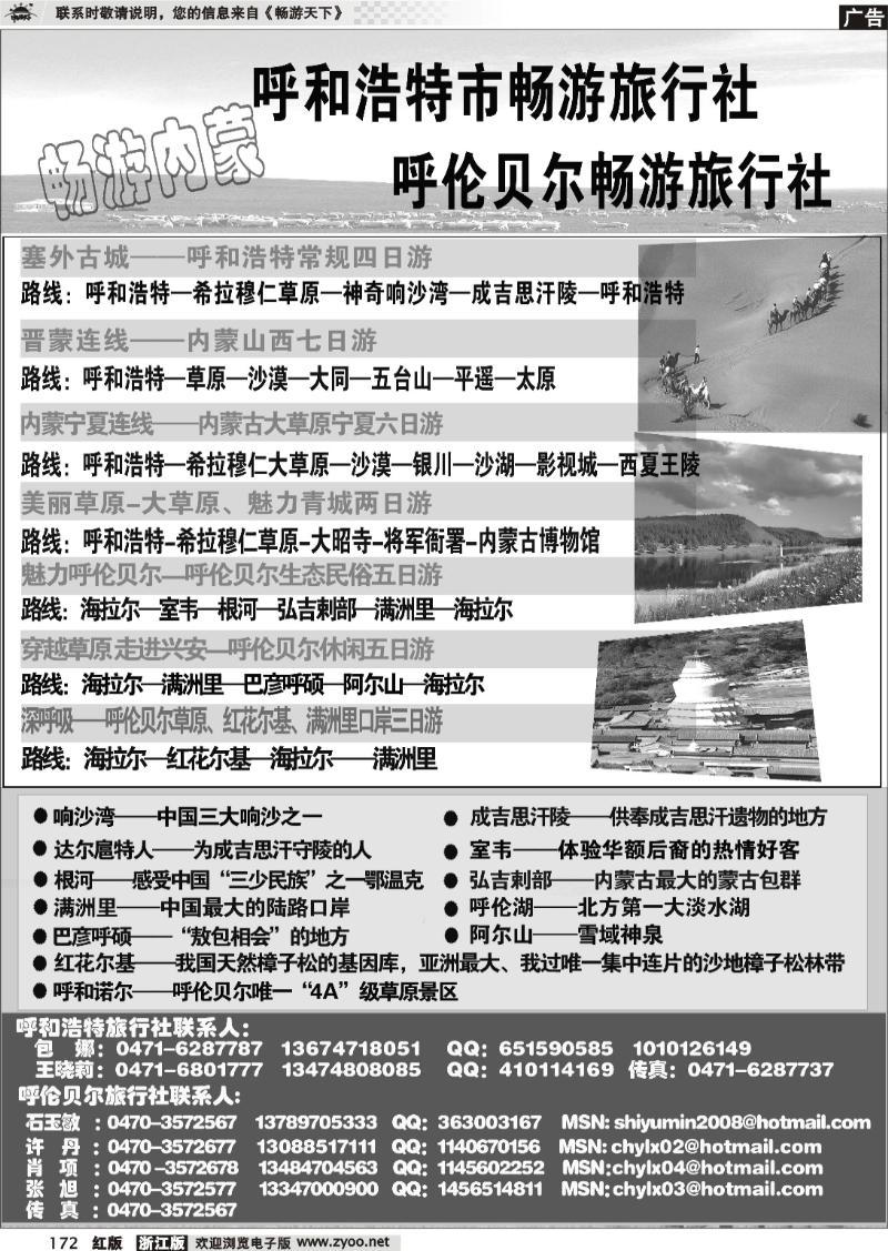 XX騰飛旅行社是一家發(fā)展迅速的內(nèi)蒙古本土旅行社,該公司擁有多年的旅游從業(yè)經(jīng)驗(yàn),致力于為廣大游客提供高品質(zhì)的旅游產(chǎn)品,無(wú)論是草原、沙漠還是民族文化,XX騰飛旅行社都能為您量身定制,該公司還注重客戶(hù)體驗(yàn),為游客提供舒適的旅游環(huán)境和優(yōu)質(zhì)的旅游服務(wù)。