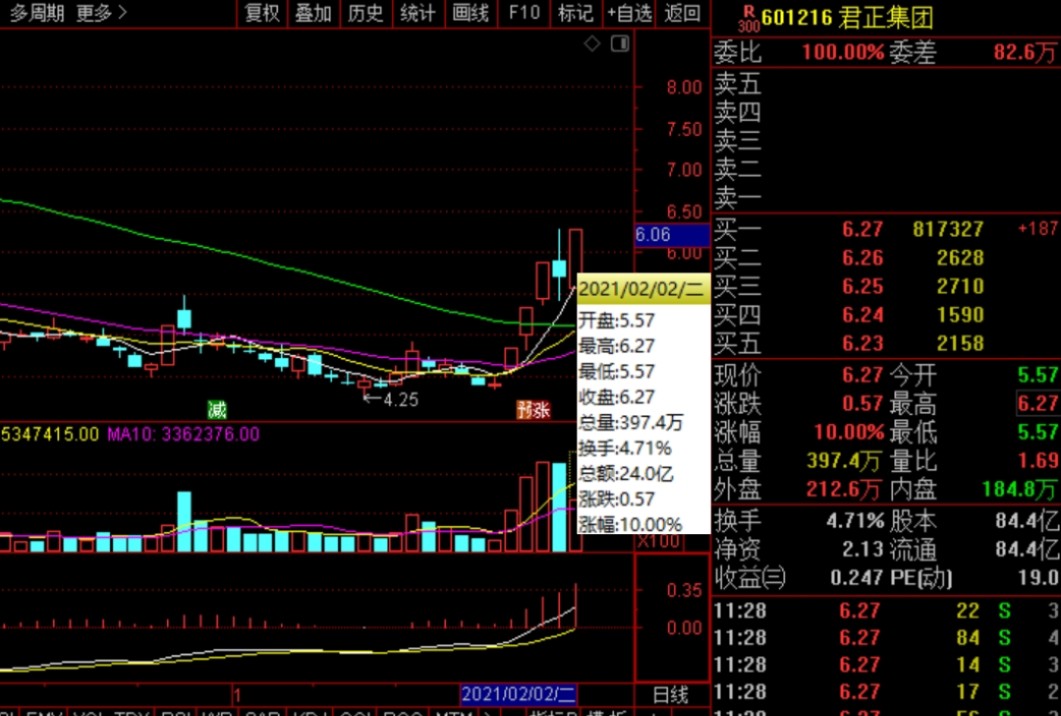 (3)公司業(yè)績(jī):君正集團(tuán)的業(yè)績(jī)是股票行情的重要影響因素,公司的盈利能力、市場(chǎng)份額、競(jìng)爭(zhēng)優(yōu)勢(shì)等都會(huì)影響股票價(jià)格。