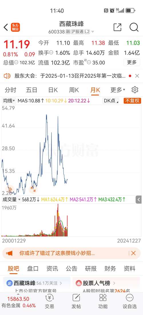 西藏珠峰股吧的市場表現(xiàn)