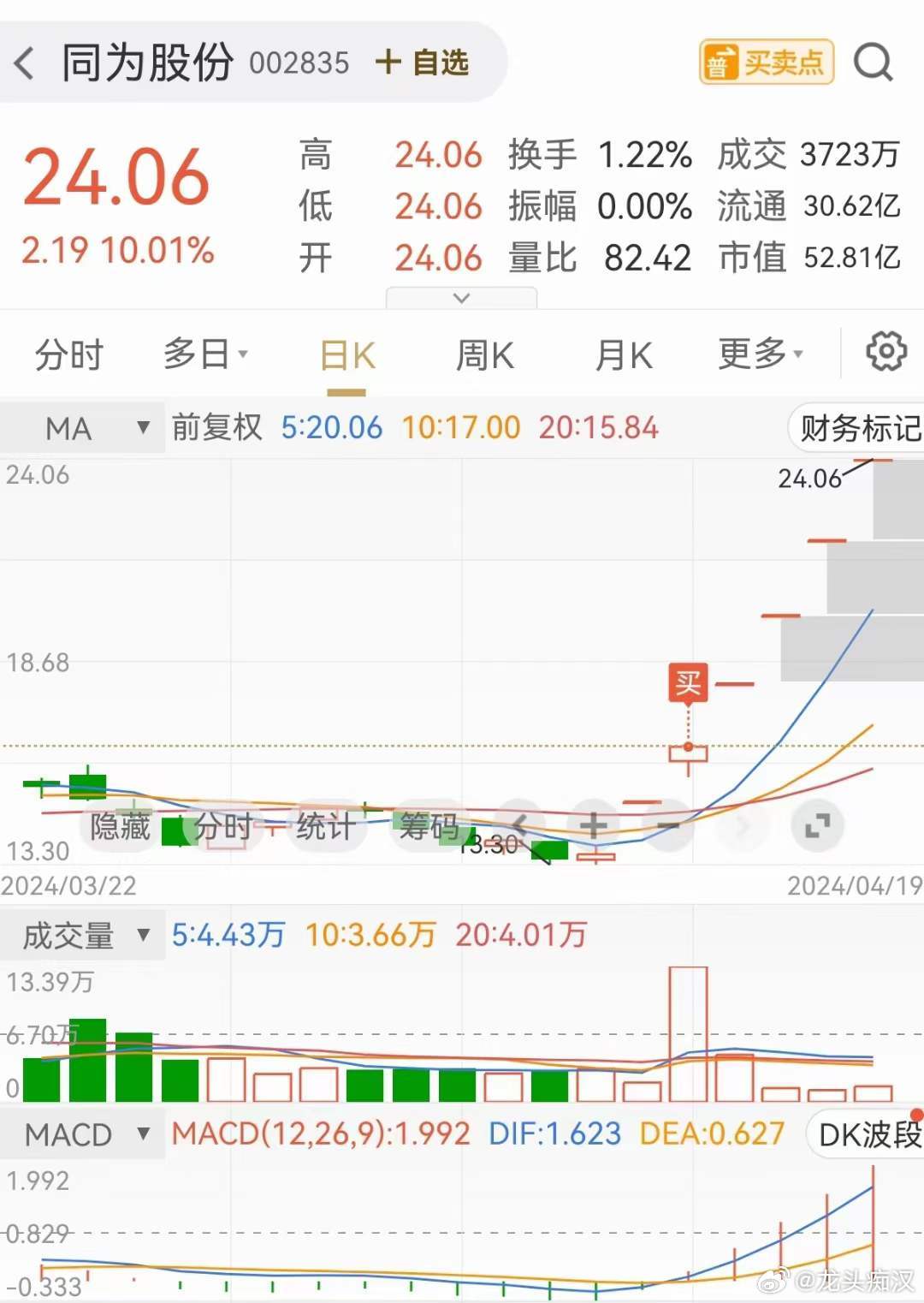 4、技術(shù)面支持:該股票的技術(shù)指標表現(xiàn)良好,受到市場資金的關(guān)注。